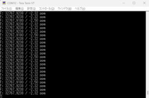 計測結果はUSB接続されたパソコンにシリアルで表示している。